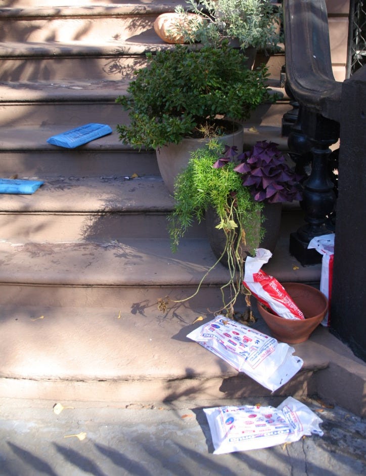 During peak COVID, a lot of the stoops in brownstone Brooklyn looked like this.