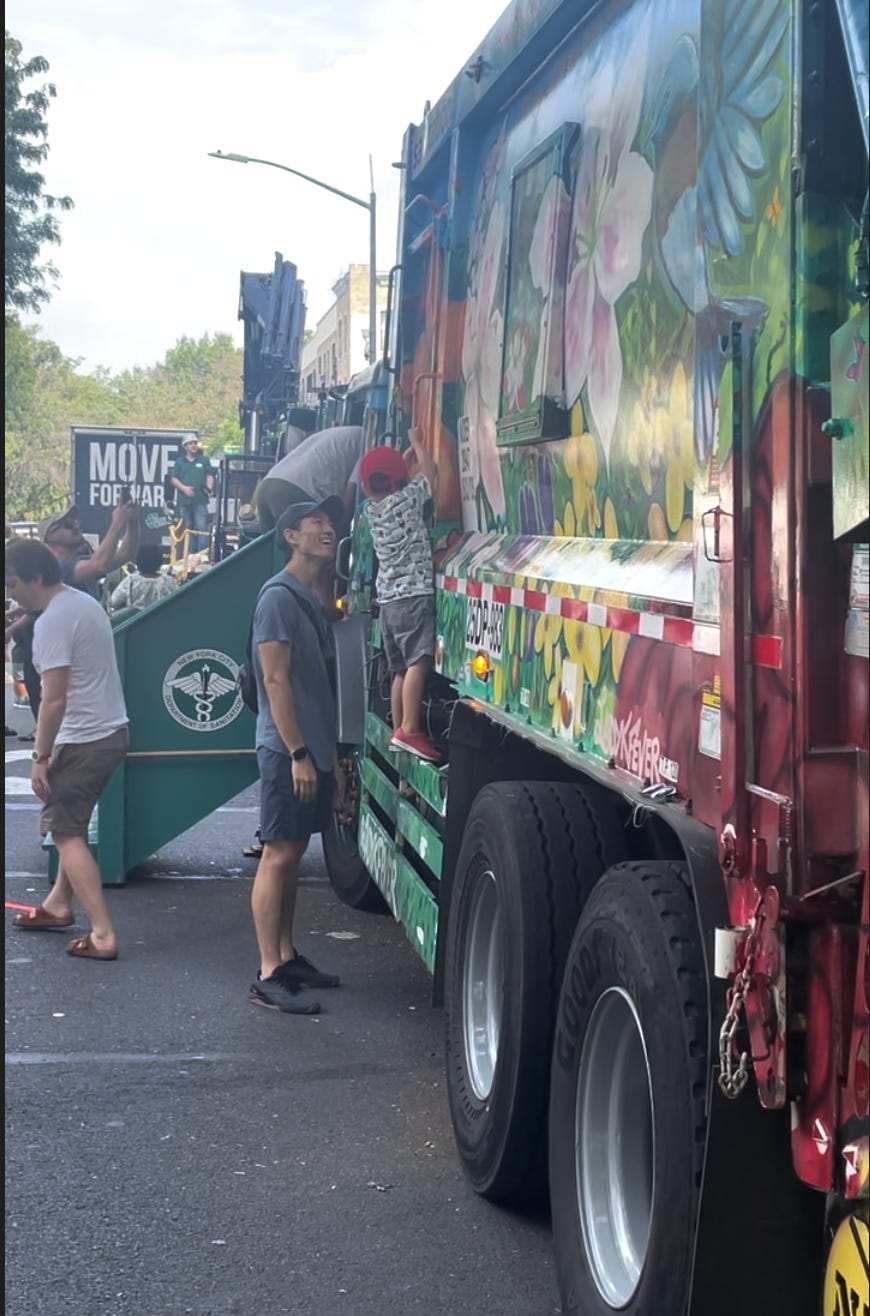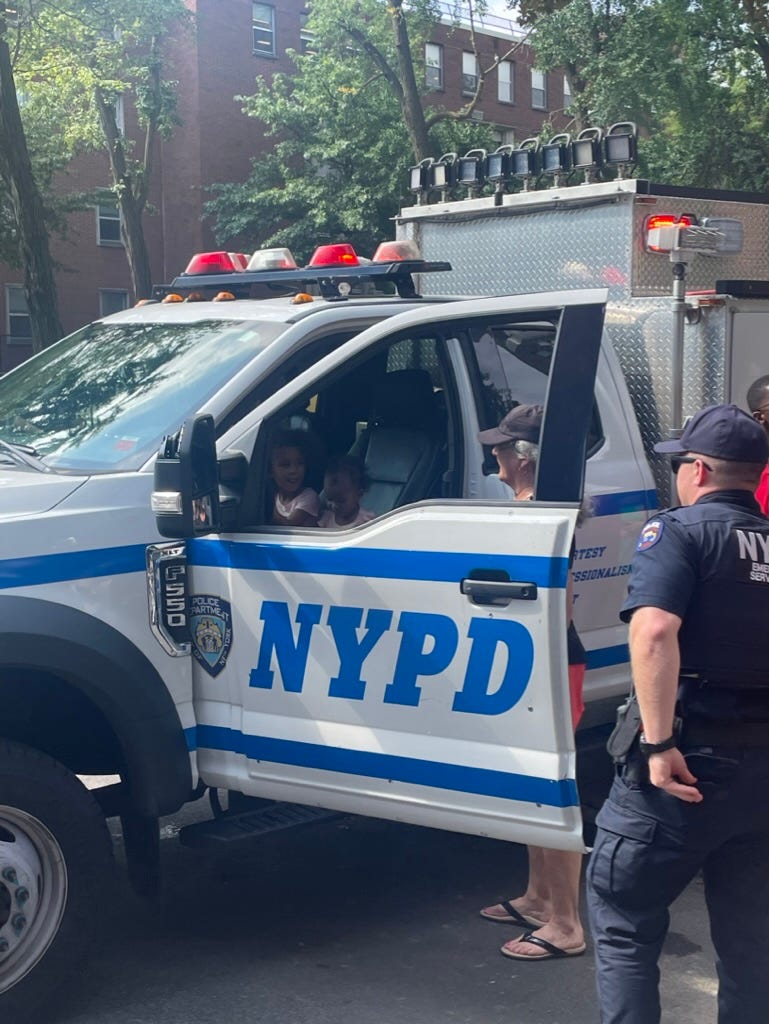 Last summer, before I moved to London, I came across a novel block party in a leafy corner of Brownstone Brooklyn. Someone, I’m assuming the City government, had closed half a block and jammed it full of firetrucks, ambulances, garbage trucks, and police cars for kids to climb on, sit in, and touch. This was probably the biggest event on the 4-8 year old social calendar that summer. Kids were losing their shit, I mean Santa’s village levels of joy.