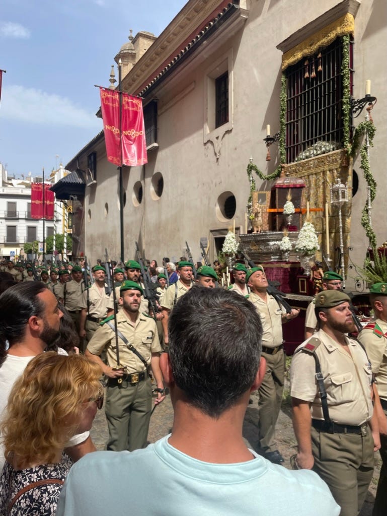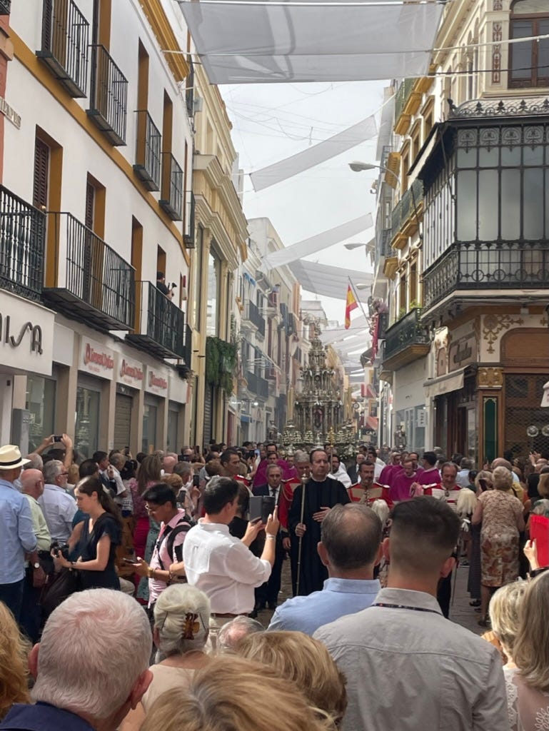 Weirdly, it reminded me of something I’d seen with my own eyes in Sevilla. During Corpus Christi the congregations of the city’s churches hoist floats and religious icons through the streets while volunteers hand out bushels of Rosemary and fragrant herbs. It’s much more parade-like than Cairo’s Iftar, but there is a big meal at the end in the town square. Again, my photos don’t really do it justice.