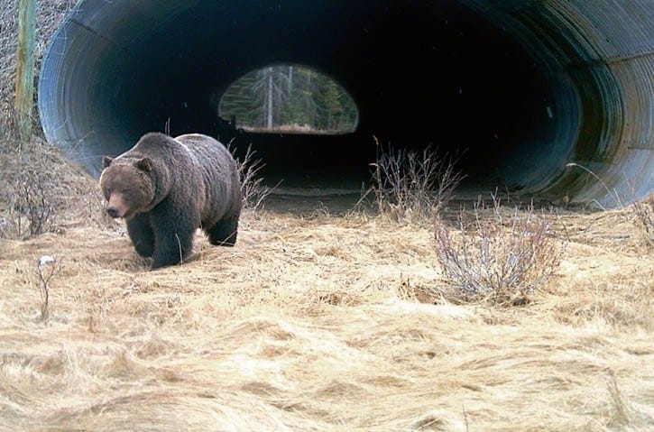 What concessions do we make to wildlife as we build cities? I read recently that LA is investing in a multimillion dollar wildlife bridge spanning 10 lanes of traffic to ease the passing of lions, deer, and other animals. The wildlife bridge, and its cousin the wildlife tunnel is an established solution allowing animals to pass safely through highways. Behold a grizzly bear using a highway underpass in Canada.